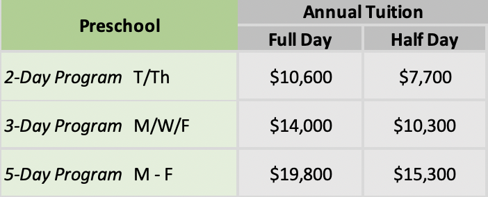 Once weβve processed your application, we will return your Enrollment Contract to you for review and signature (space-permitting). A deposit of $900 is due with your Enrollment Contract and applied toward your Annual Tuition.